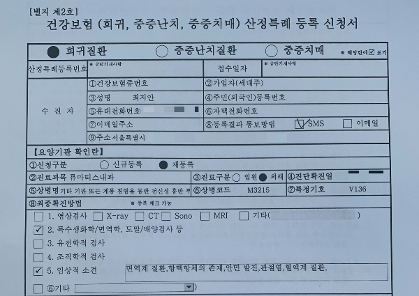 다행히도 산정특례에 해당이 되어 9년째 병원비의 10%만 부담하고 있어요.