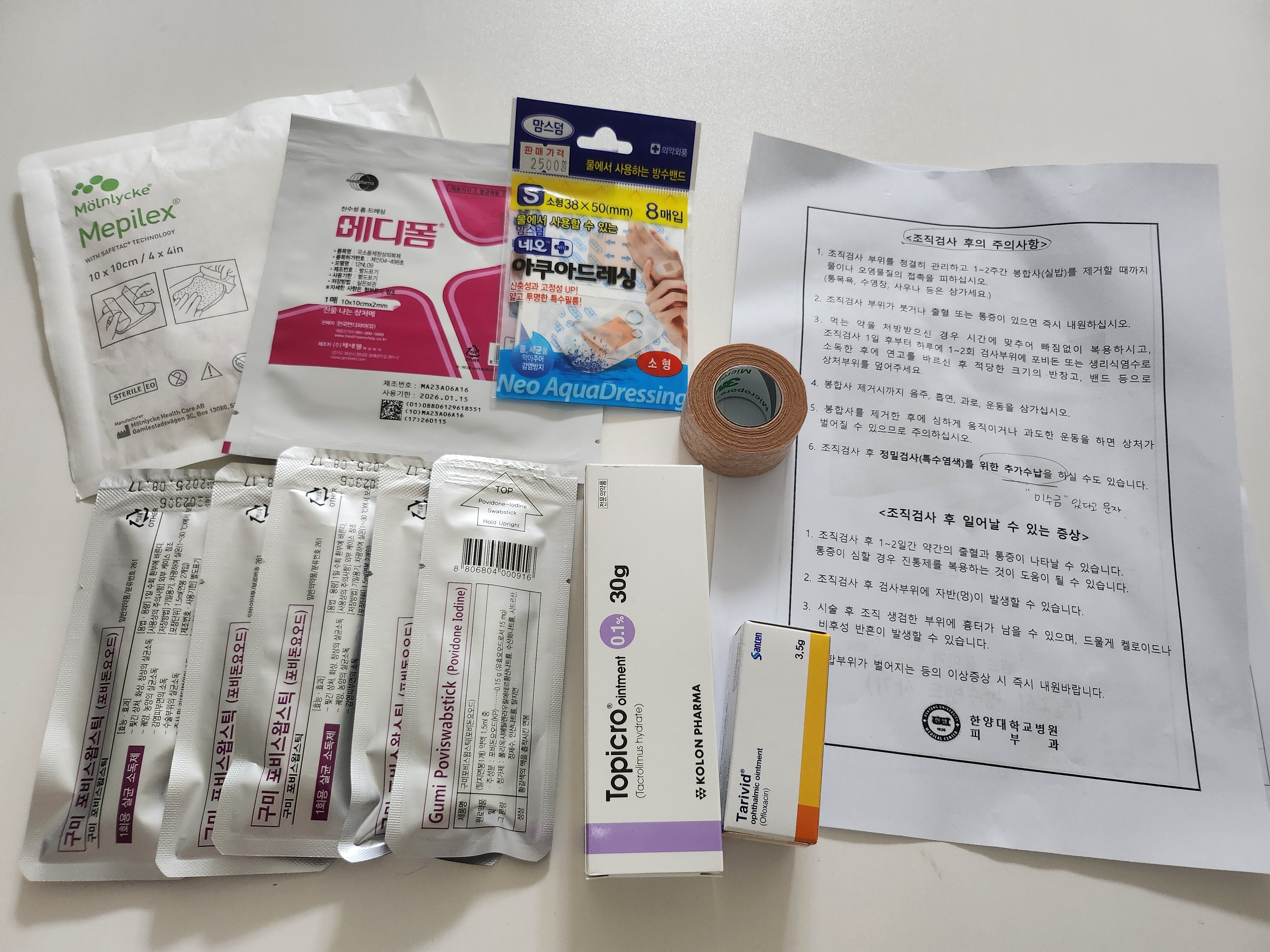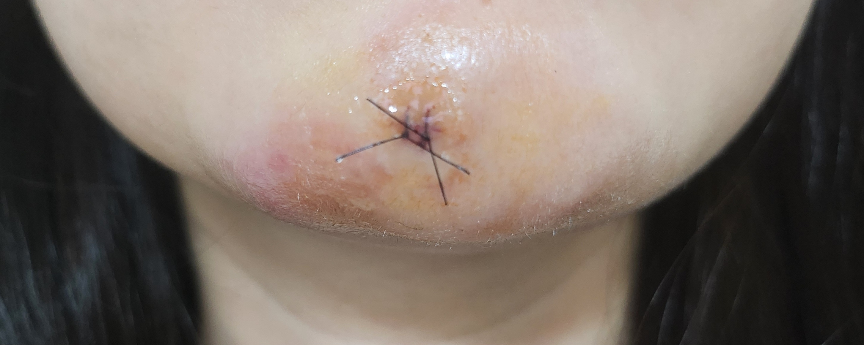 조직검사 1주일 뒤, 2 바늘 꿰맨 실밥을 제거했습니다.