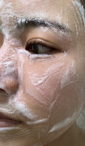 얼굴에 물기 있는 상태에서 클렌징 디바이스로 러빙해 주었더니 거품이 풍성하게 났습니다.