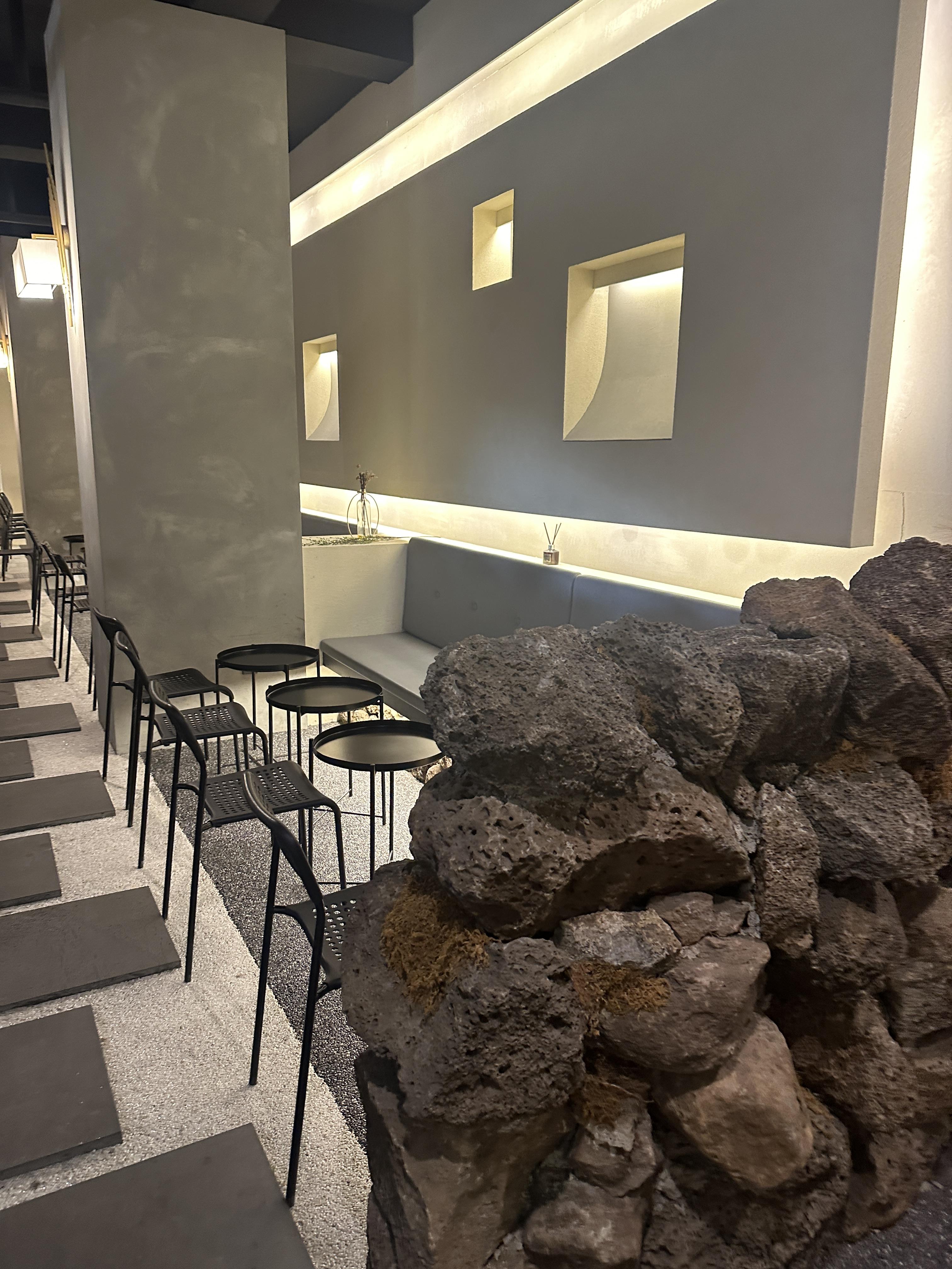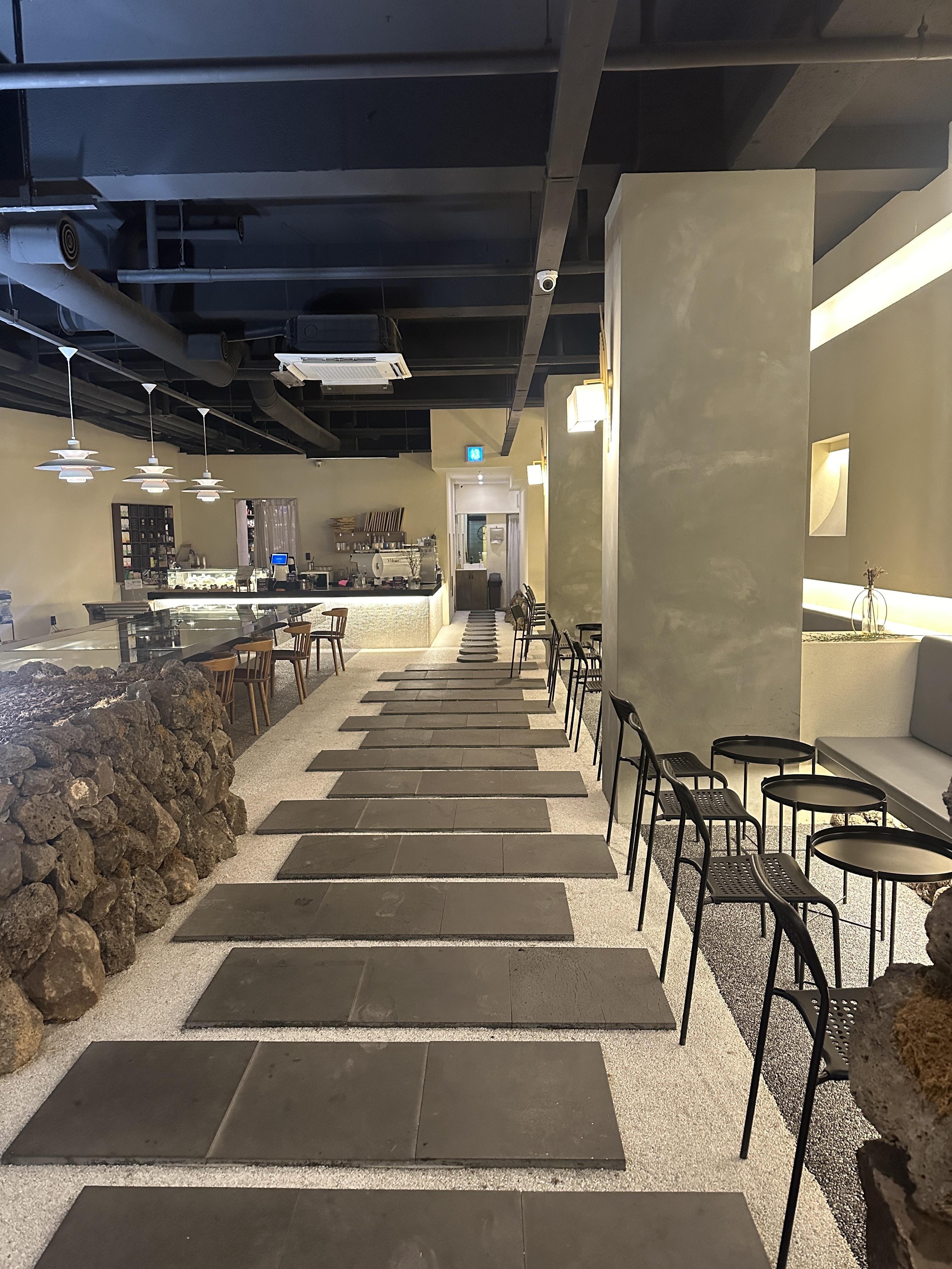 돌담으로 공간이 분리 되어 있고, 구역별로 테이블과 의자도 달라서 마음에 드는 자리로 선택해서 앉을 수 있어요.