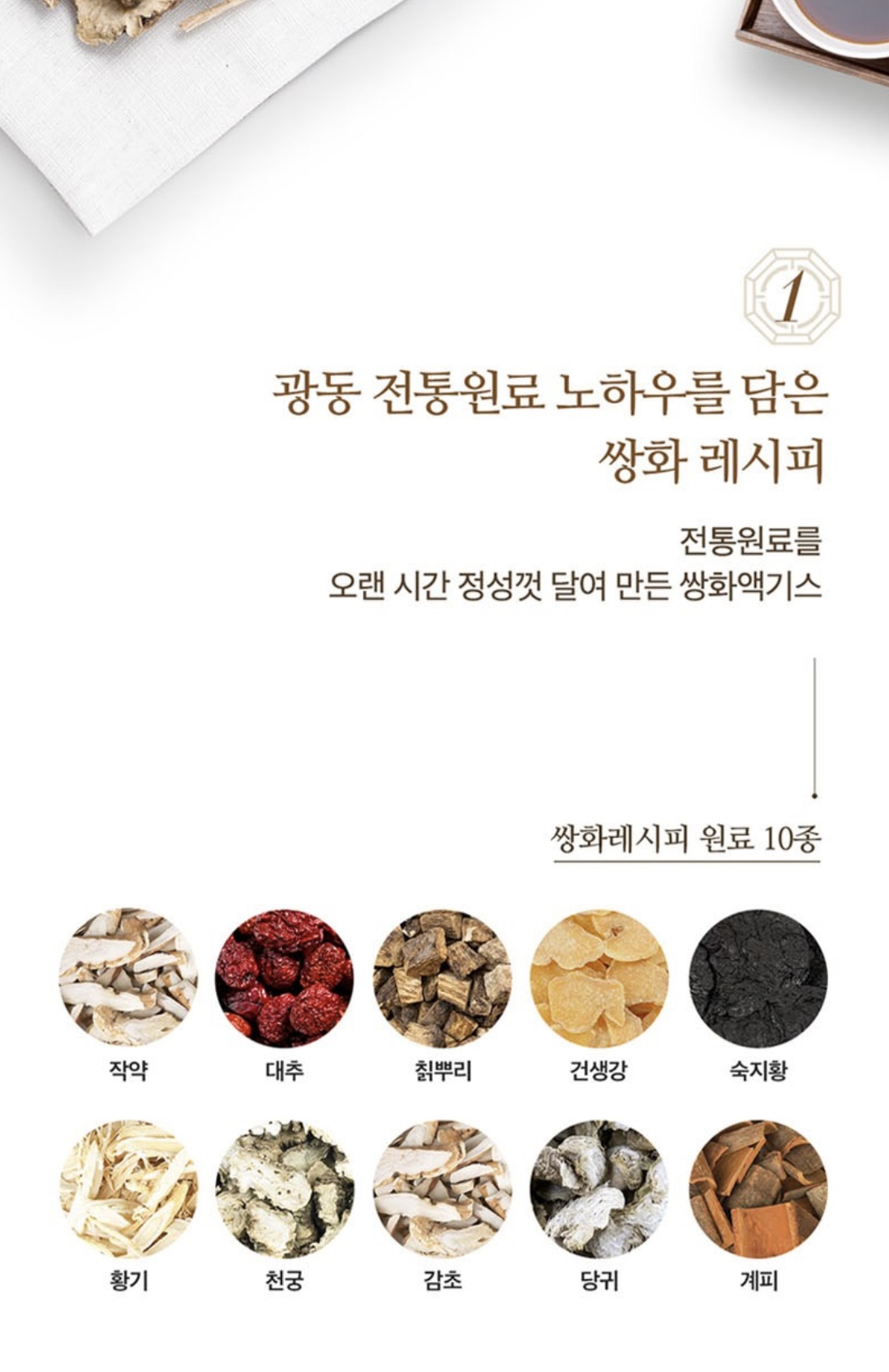 광동만의 전통원료로 만든 쌍화액기스가 들어있습니다.