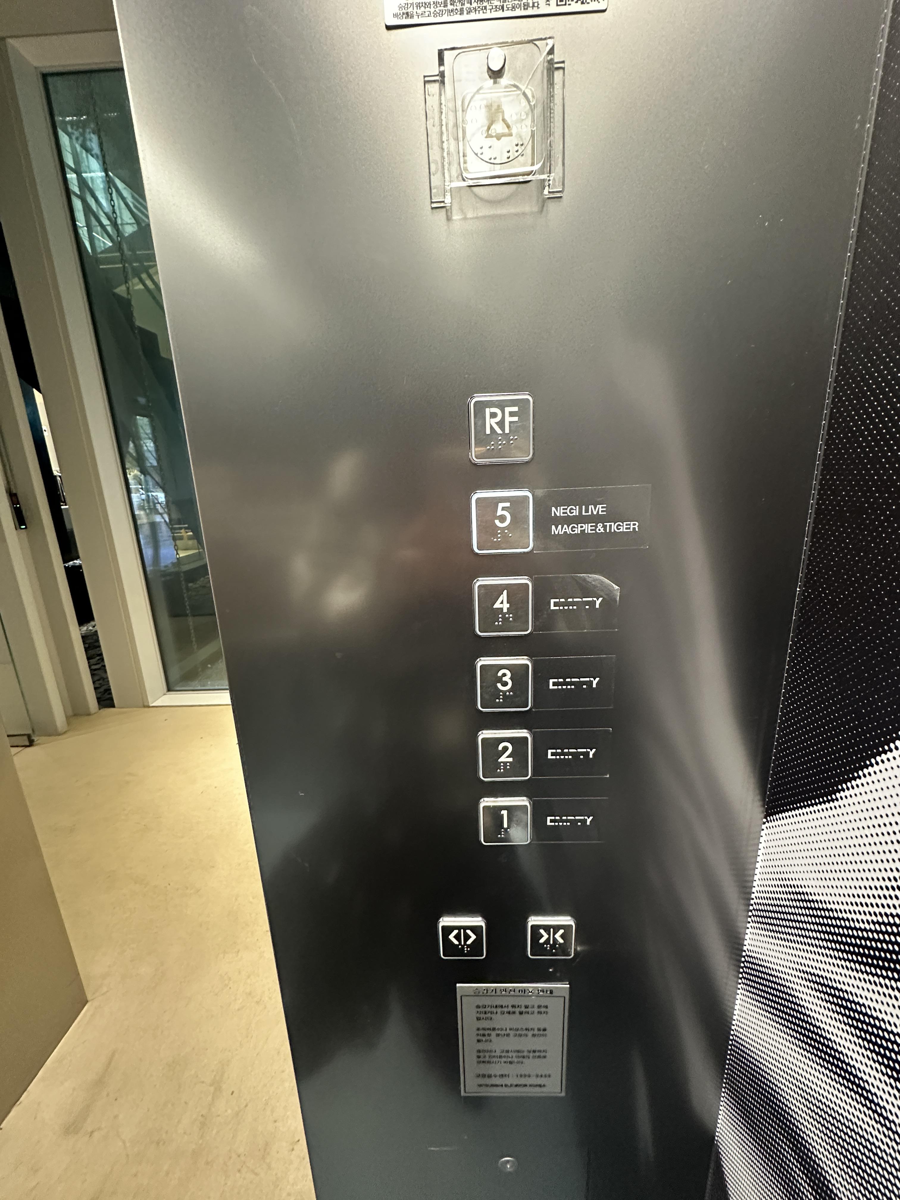 바로 앞에 있는 엘리베이터를 타고 5층에서 내리면, 오른편에 맥파이앤타이거 성수티룸이 있습니다.