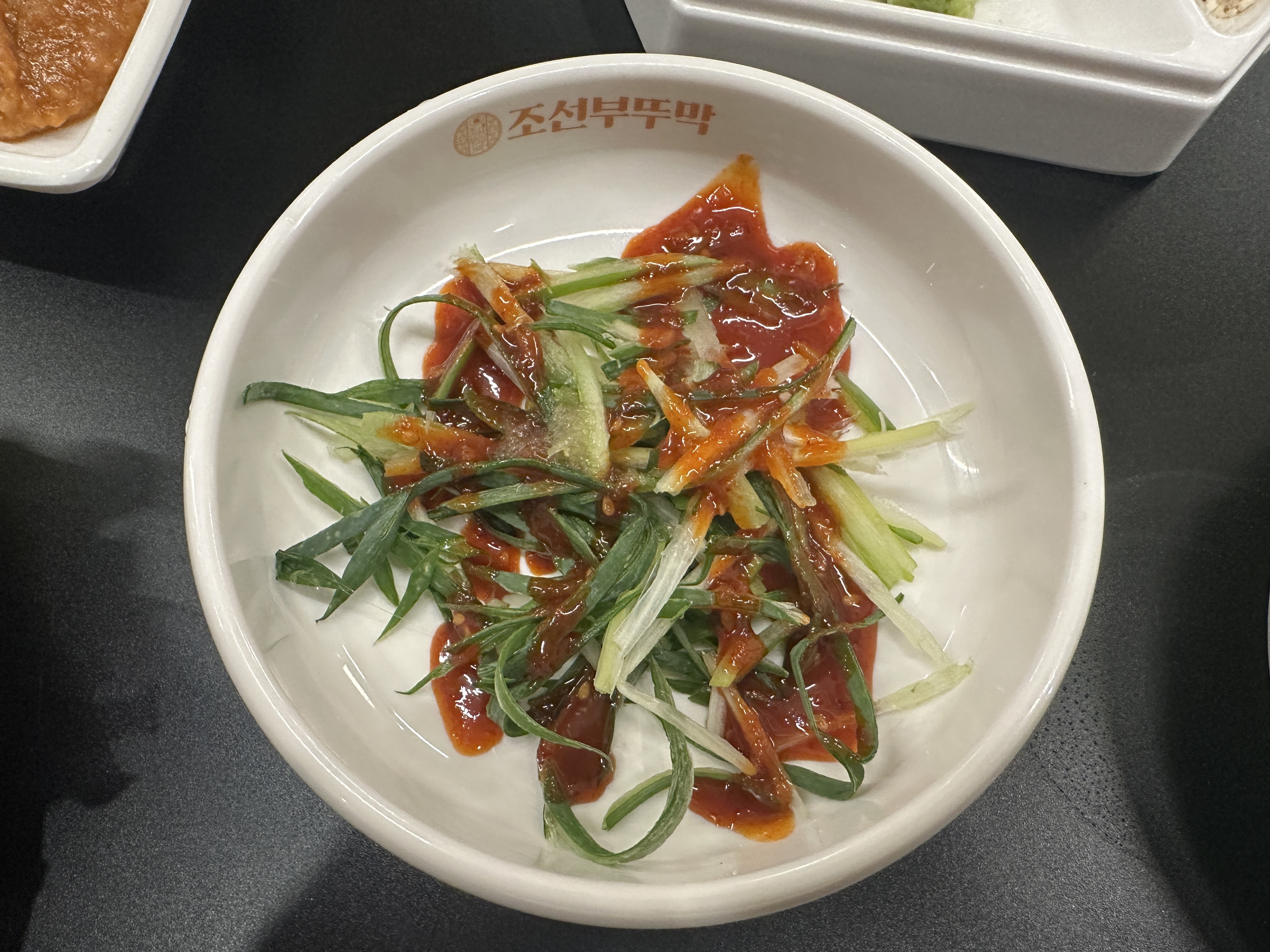 콩나물무침,고사리,숙주,김치등을 고기기름에 구워서 곁들여 먹을 수 있어요.