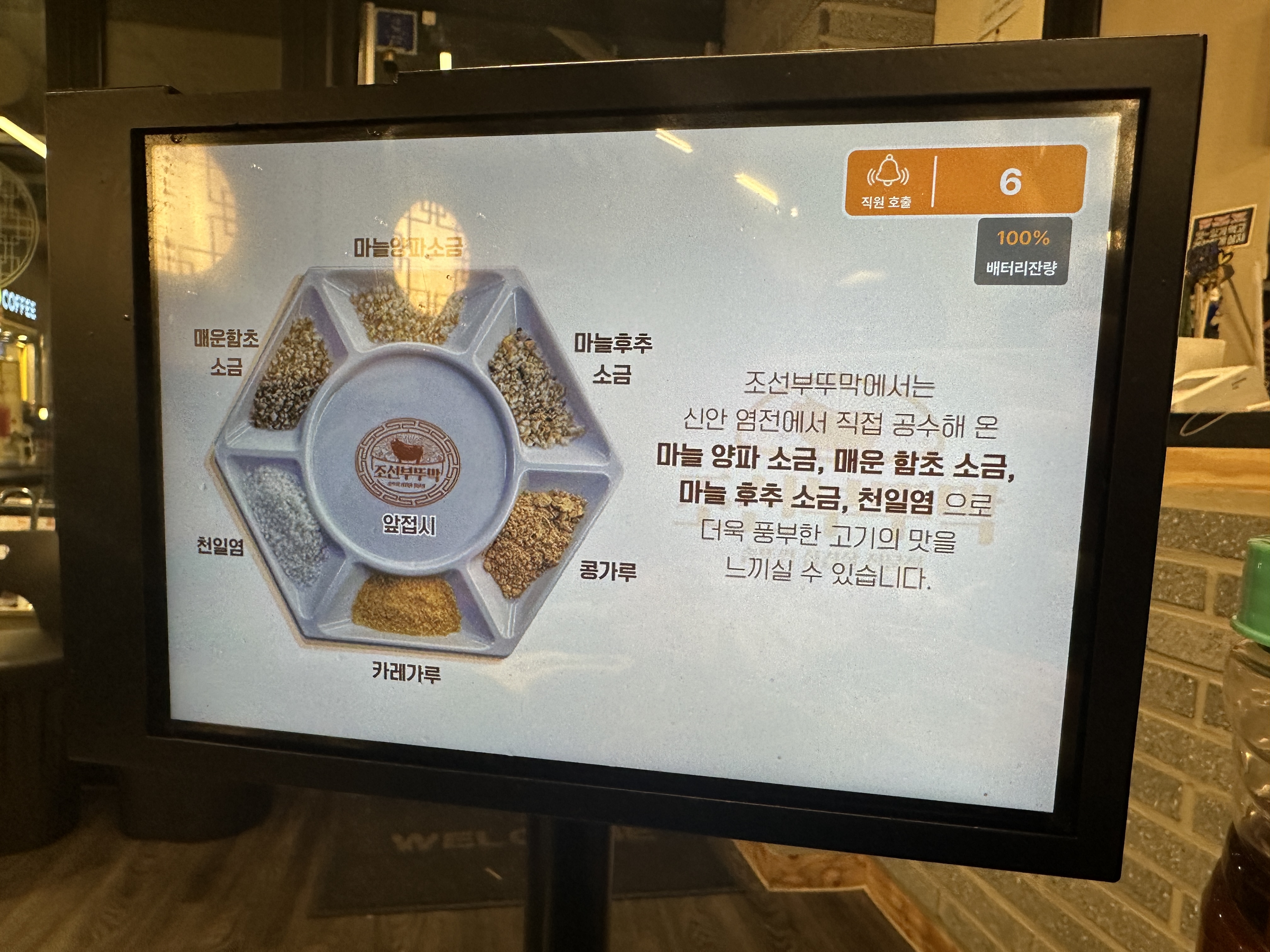 자리에서 키오스크로 주문을 할 수 있었습니다.