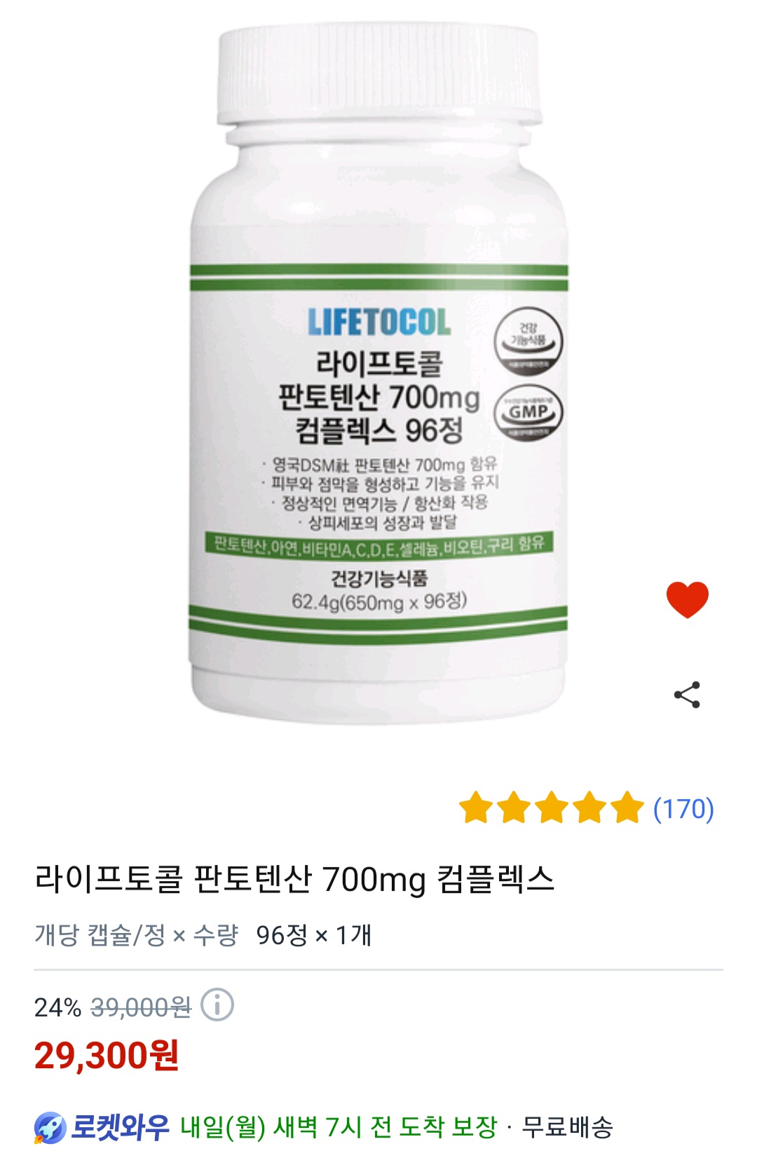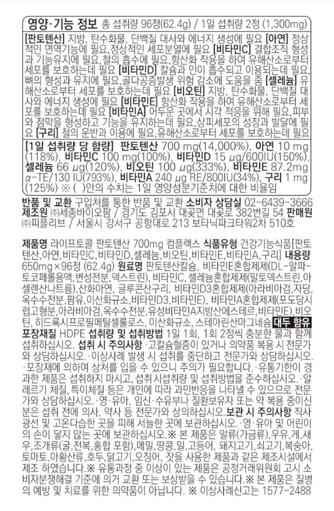 라이프토콜 판토텐산 700mg 컴플렉스