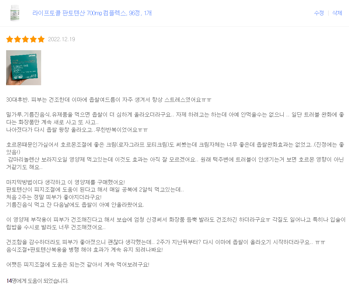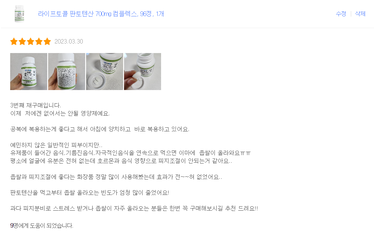 판토텐산이 피지조절에 좋다고 해서 1년 가까이 섭취하고 있는데