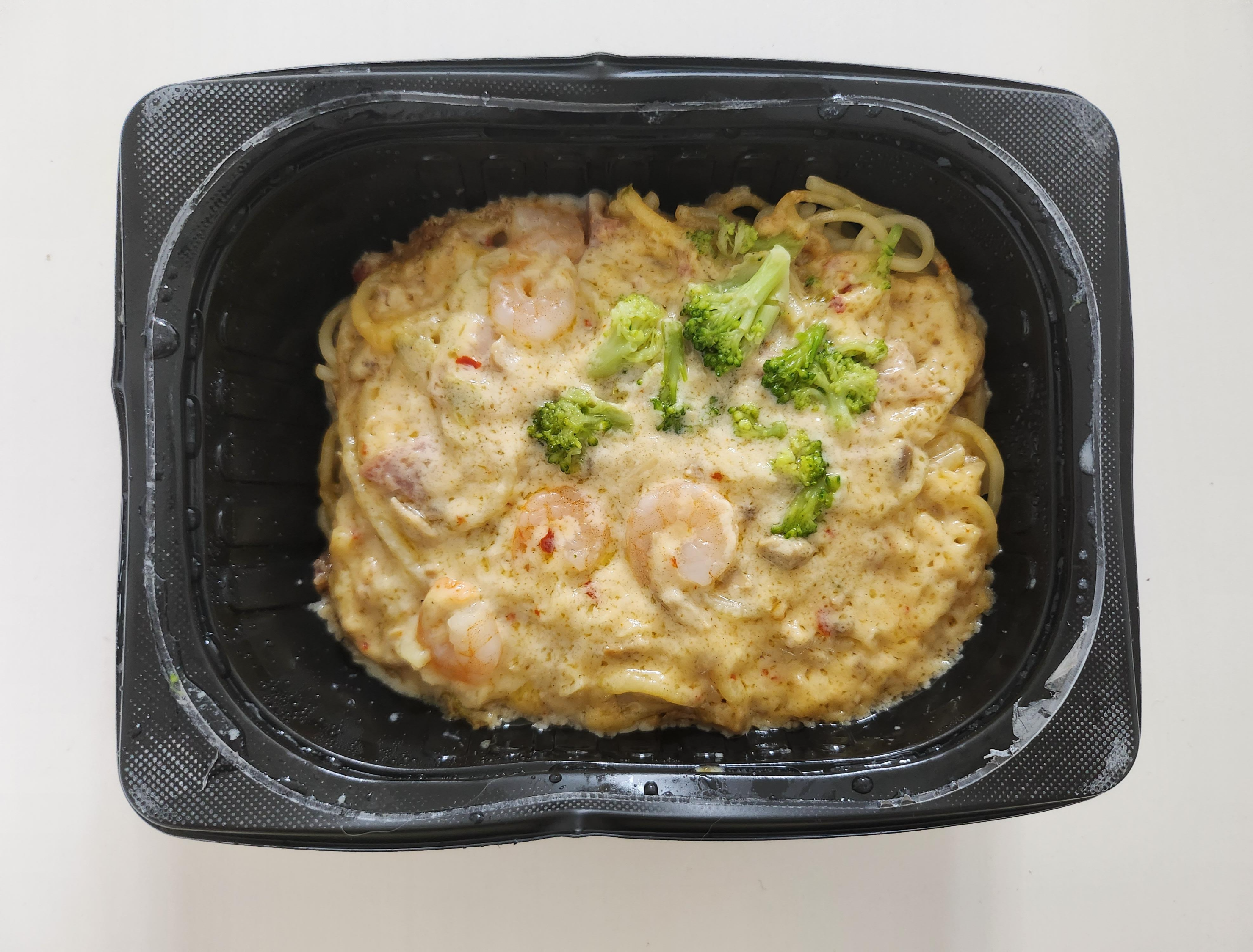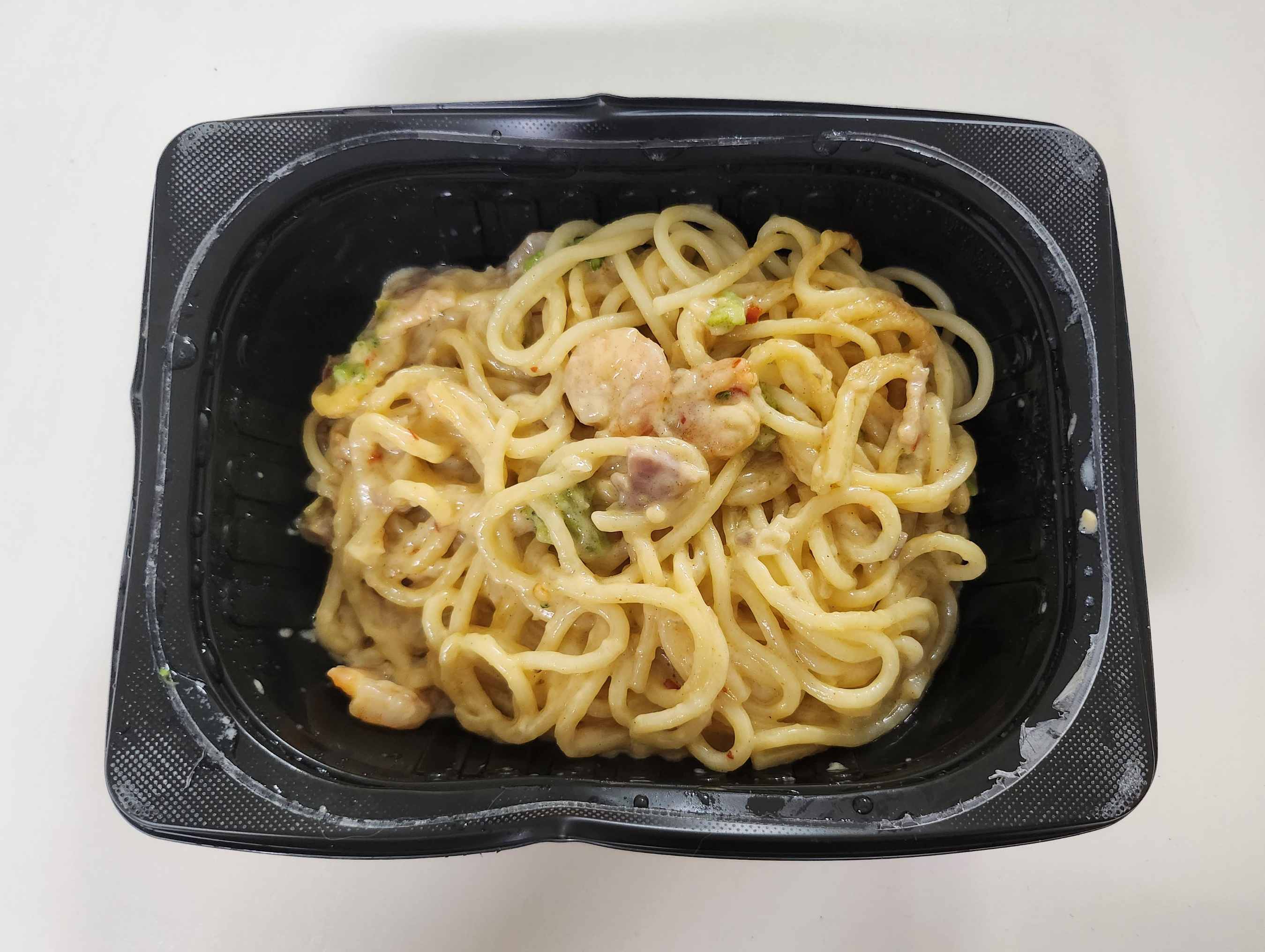 -원재료명 : 숙면{스파게티면(듀럼휘트세모리나:이탈리아산)}, 양파, 새우, 과˙채가공품, 베이컨류, 정제수, 기타 가공품, 브로콜리, 소스, L-글루탐산나트륨(향미증진제), 복합조미식품 1, 설탕, 청양고추, 버터, 채종유, 마늘, 식육추출가공품,