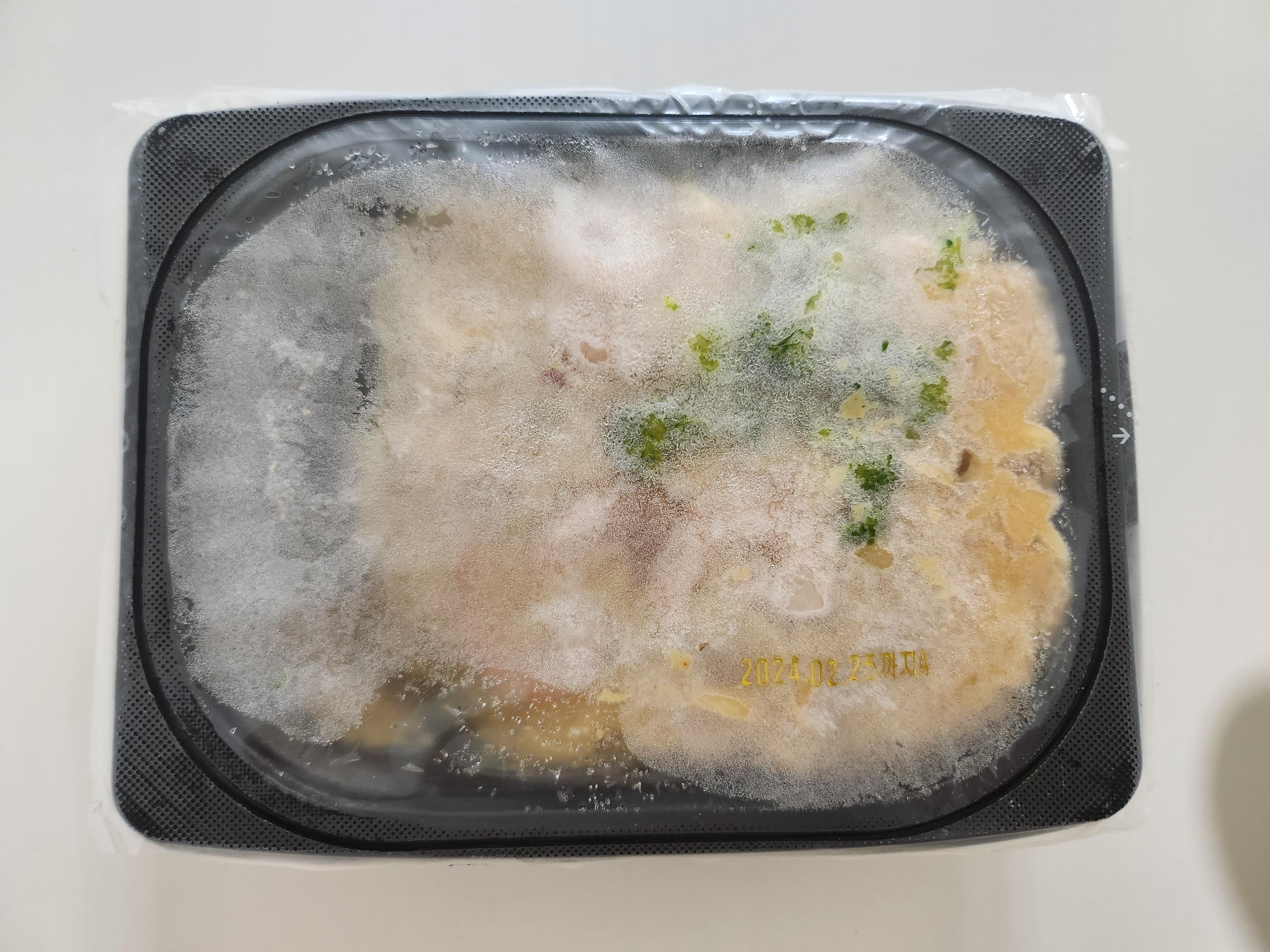 -조리방법 : 종이 포장재를 제거하고 진공포장은 그대로 둔 채 전자레인지 6분 조리