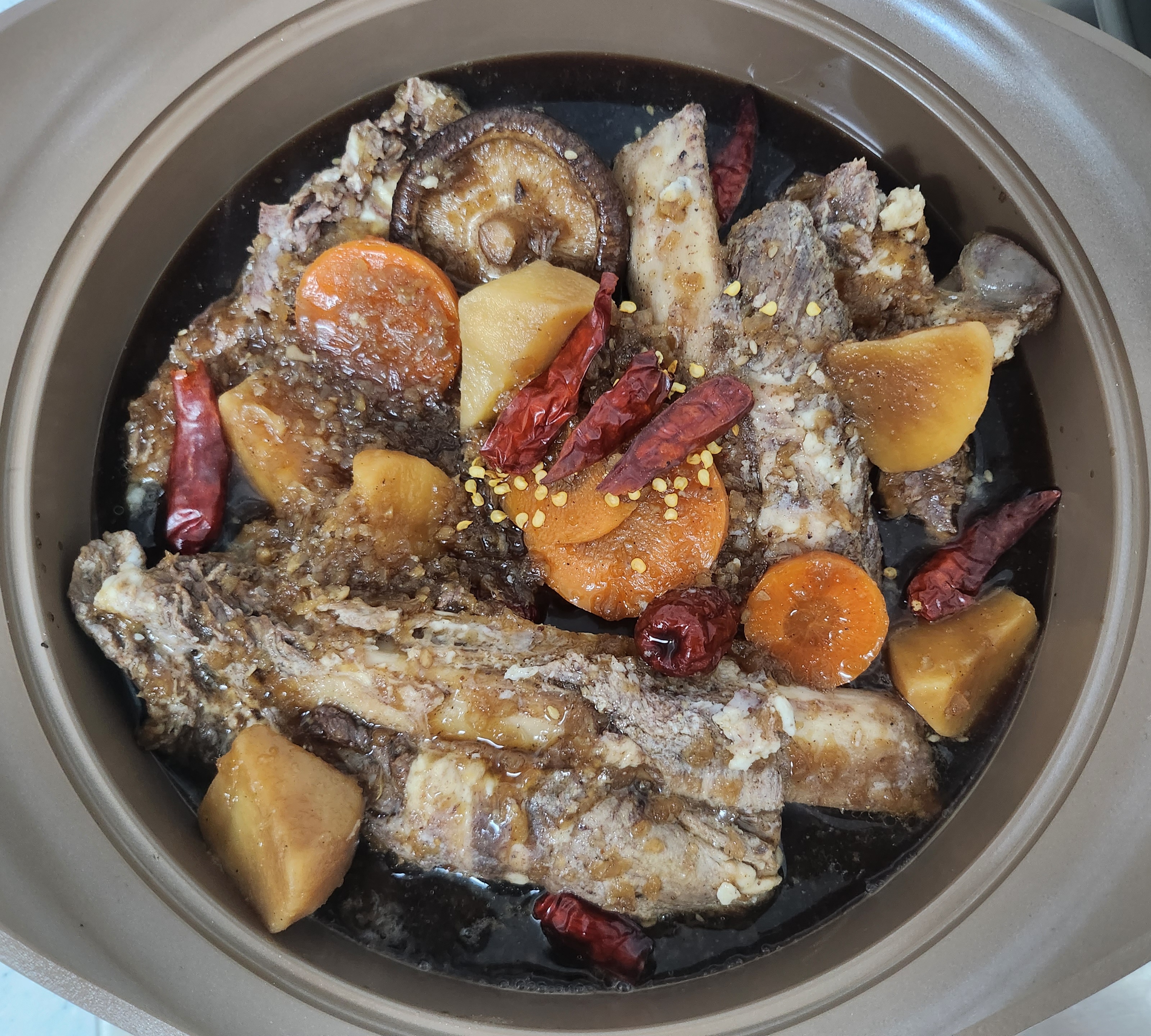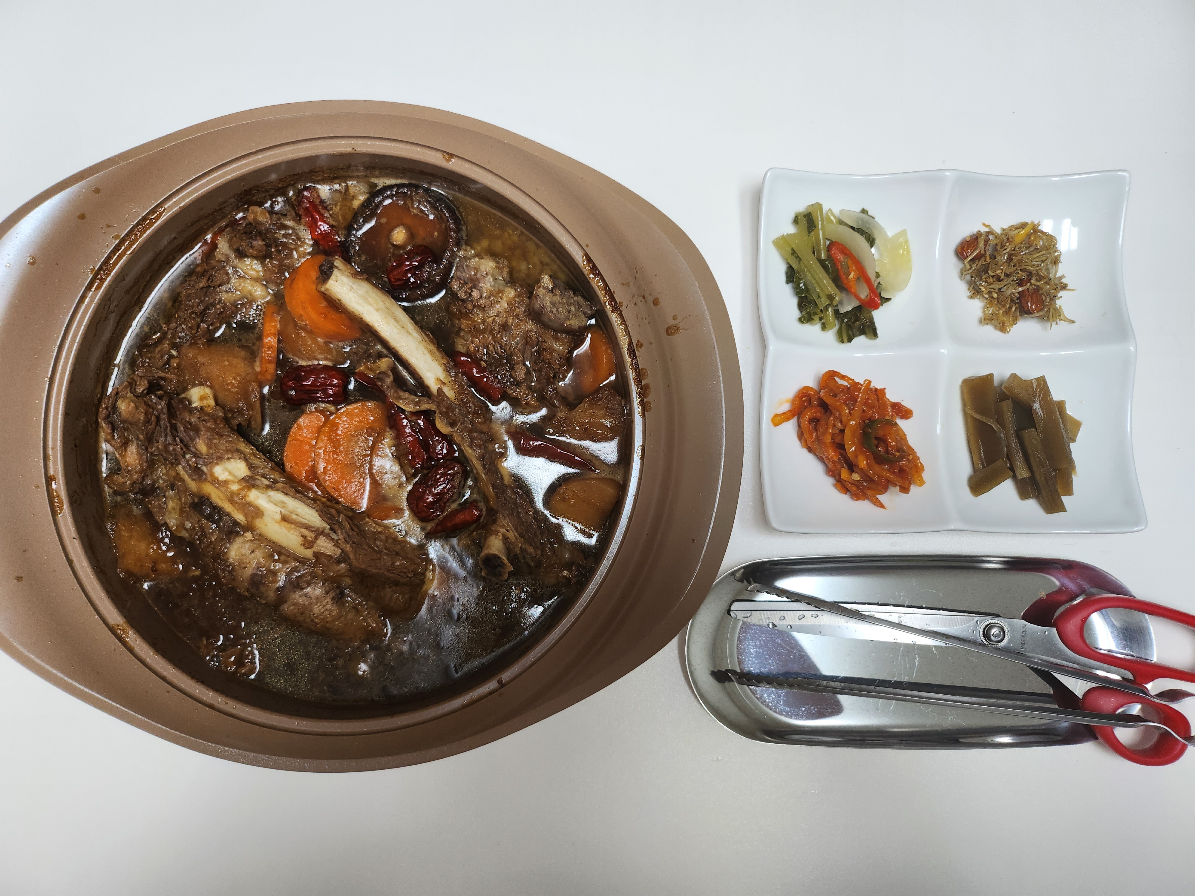 완성된 소갈비찜을 식탁에 세팅해서 찍어보았어요.