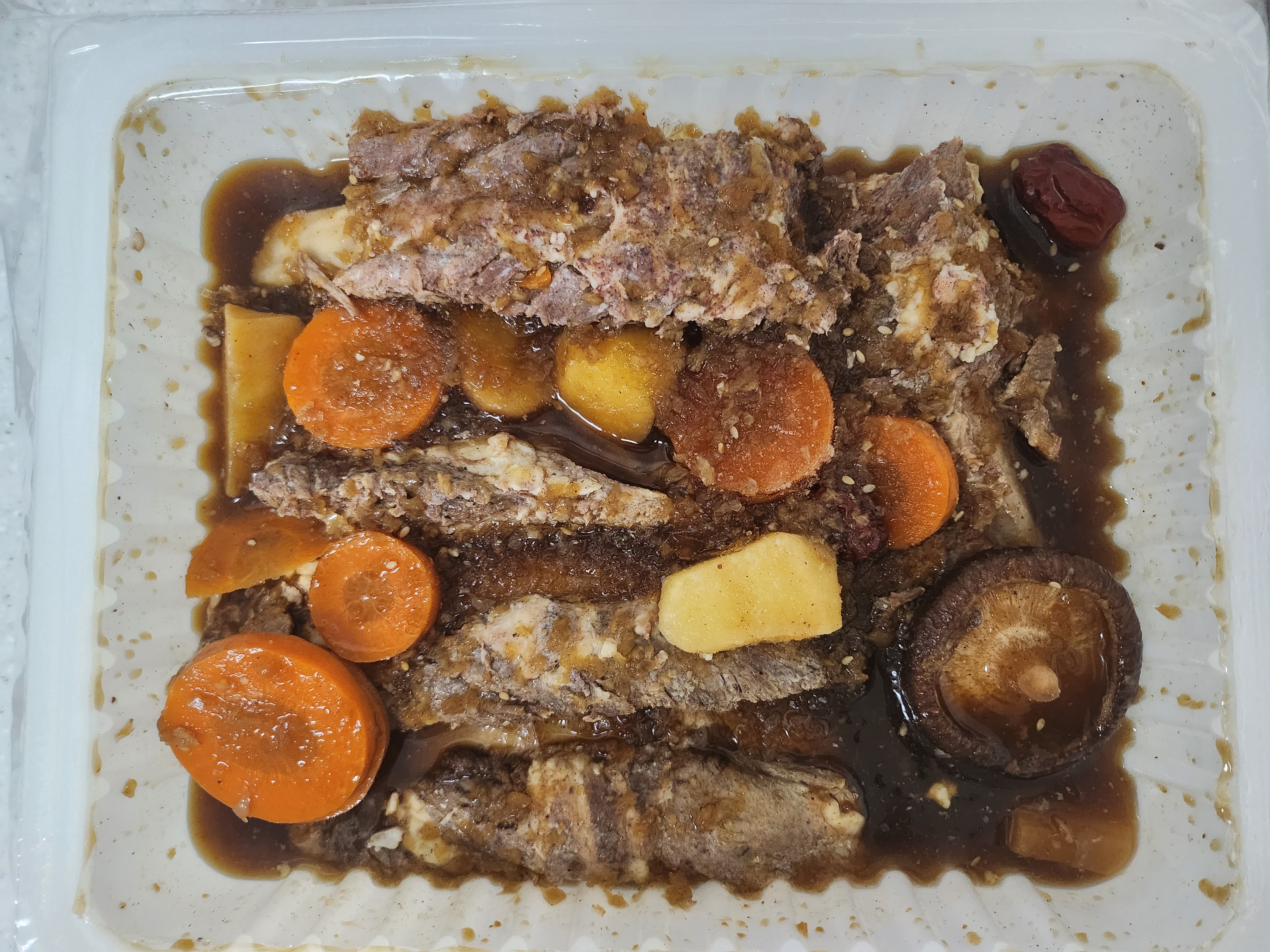종이 포장재를 제거하면 이렇게 매운 고추와 갈비찜이 보여요.