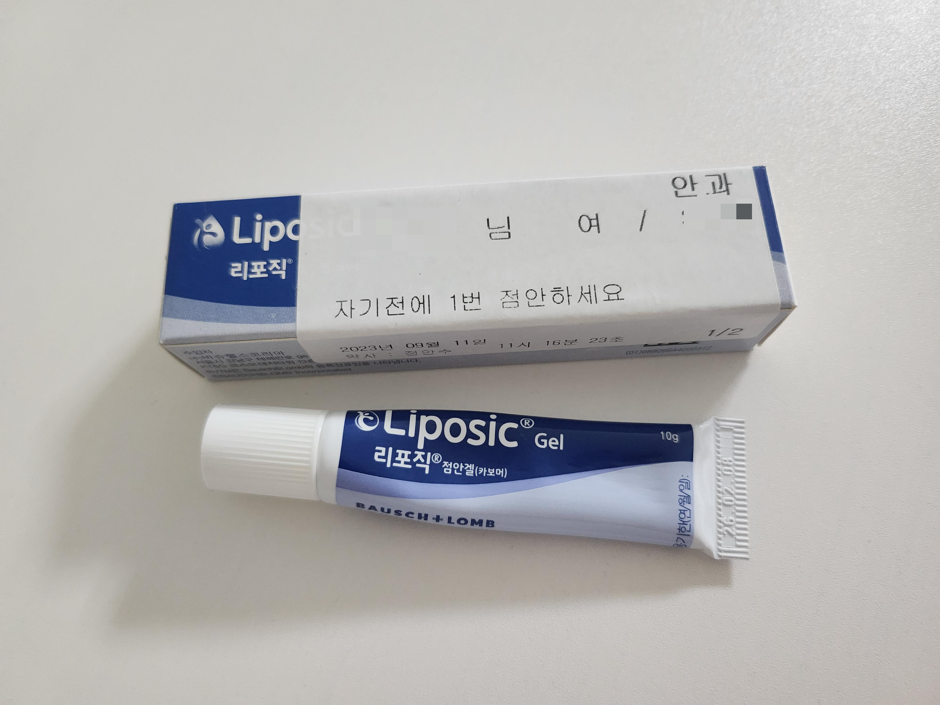 저는 수시로 인공눈물을 넣어주고, 리포직 점안겔은 자기 전에만 사용하고 있어요.