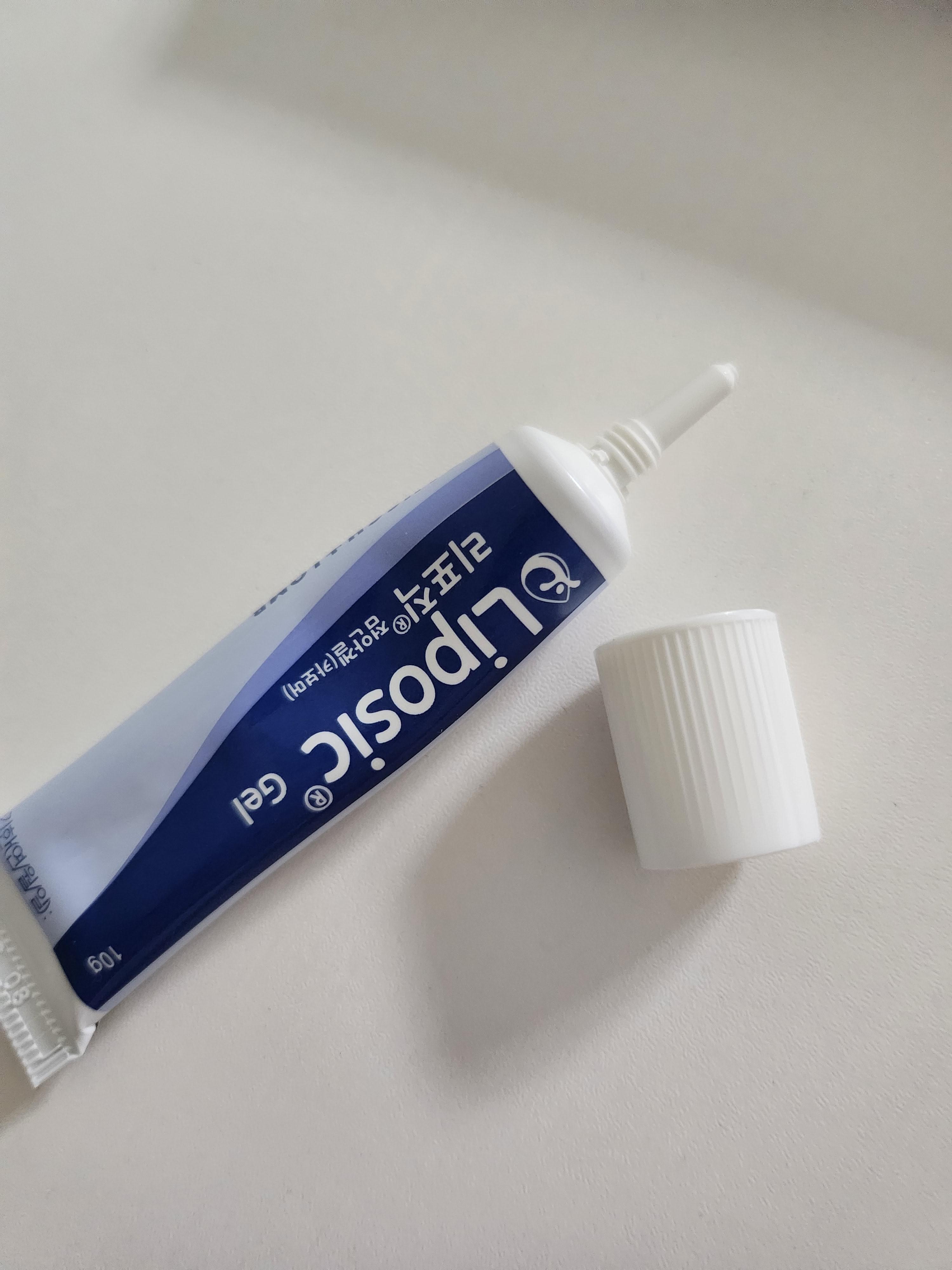 폴리포일 재질의 튜브에 든 백색의 탁하고 점성을 가진 점적성의 점안(눈에 넣음) 겔
