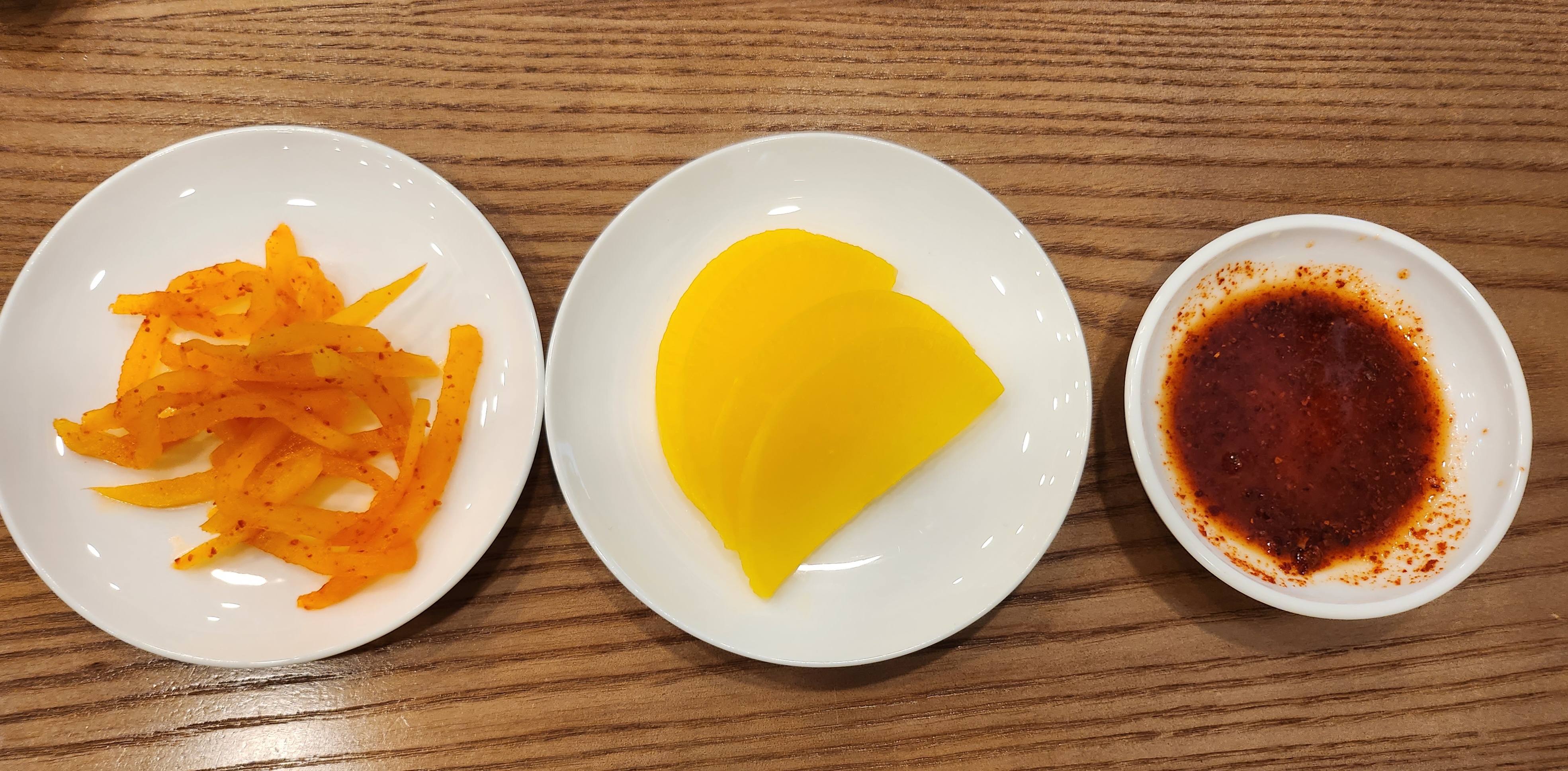 기본찬으로는 단무지무침과 단무지, 간장이 나와요.