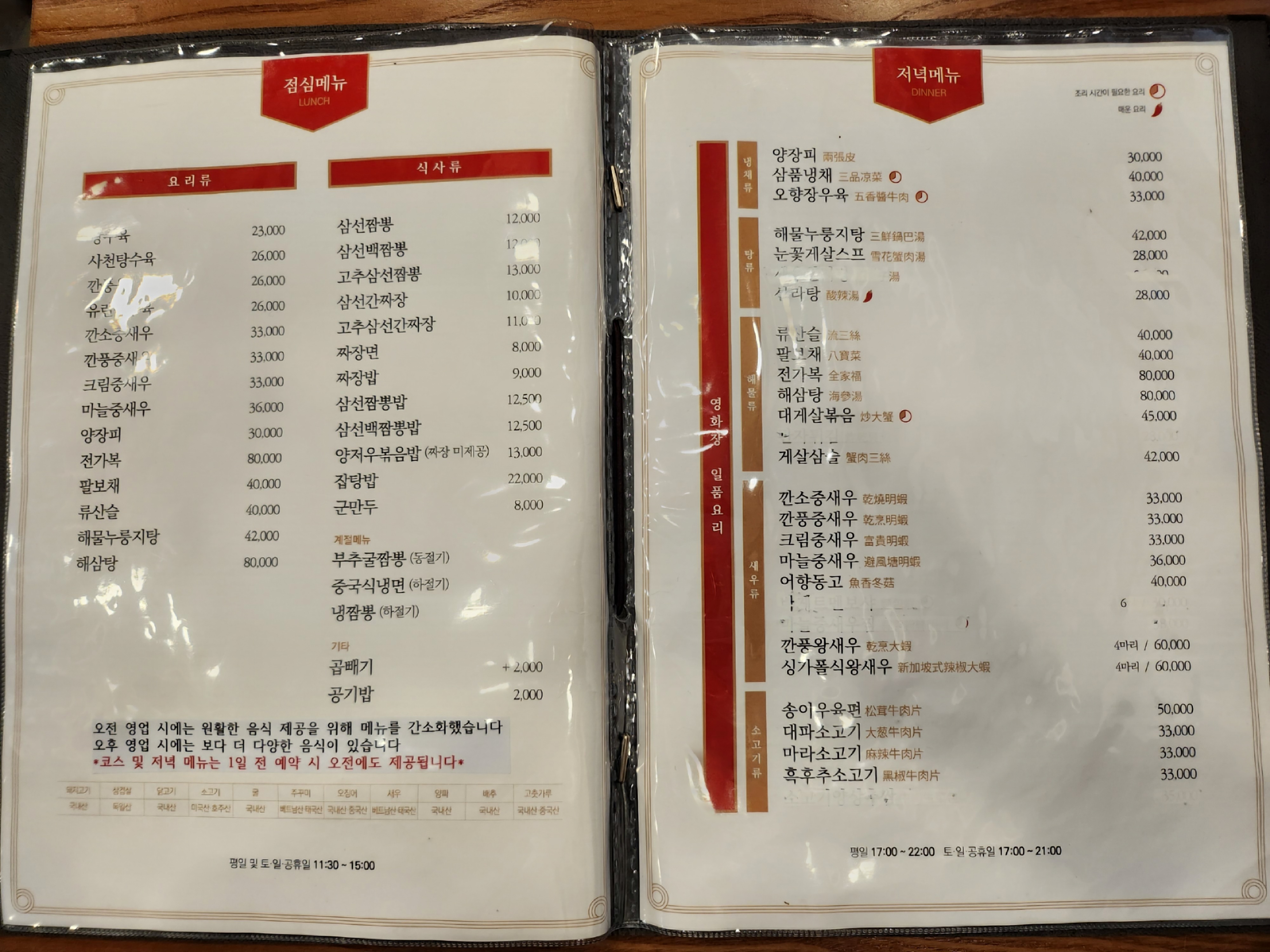 그땐 탕수육, 양장피, 해물누룽지탕, 삼선짬뽕을 먹었었고,