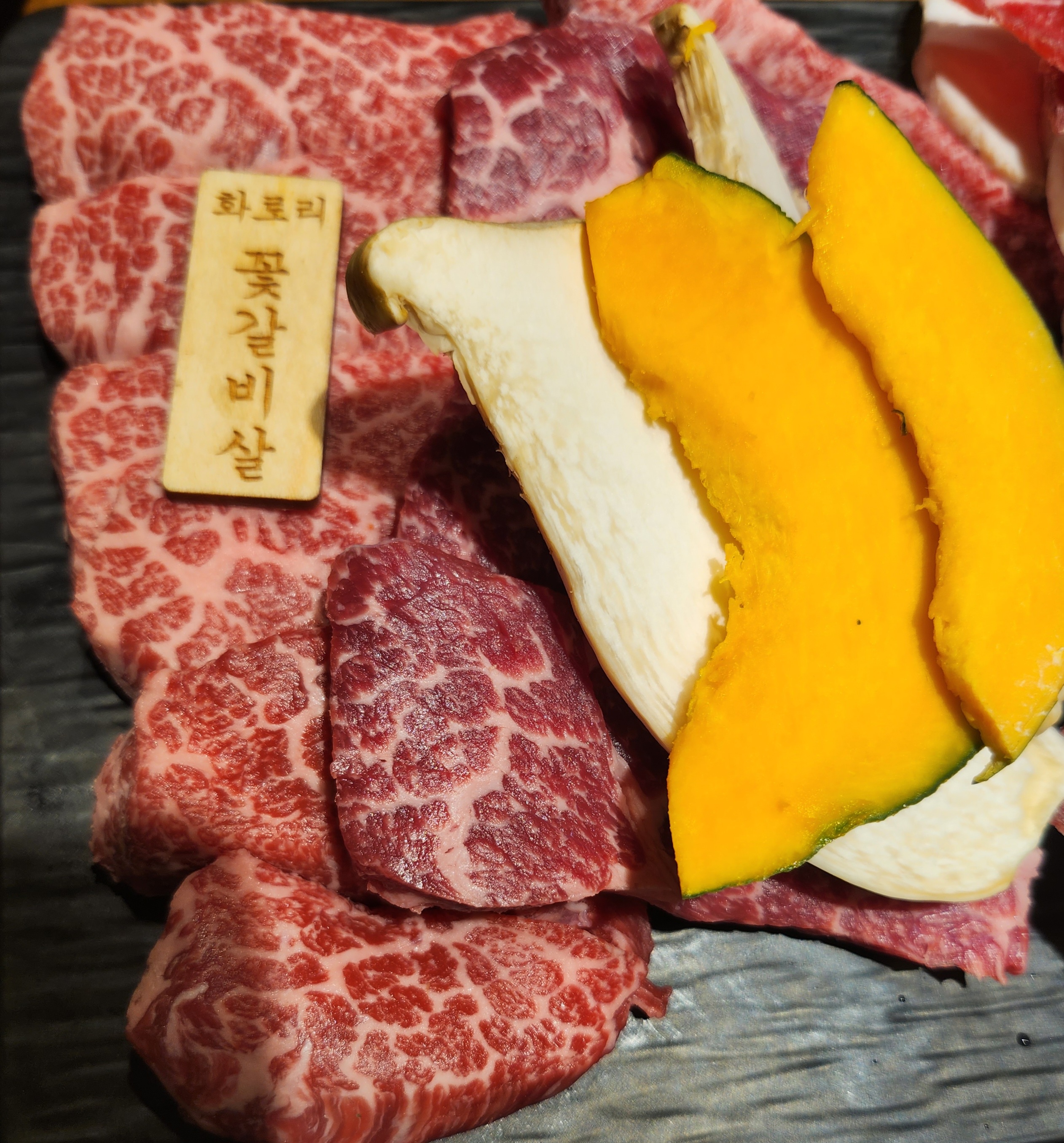 저희는 꽃갈빗살 2인분과 차돌박이 2인분을 주문했습니다.